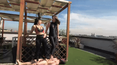 Zwei freche Herrinnen wollen ihren Sklaven erniedrigen und quälen, dazu lassen sie sich für ein Ballbusting gemeine Dinge einfallen. So bekommt der Loser nicht einfach nur Tritte in seine nutzlosen Eier, sie benutzen seine Genitalien als Tor für ihr Fußballspiel. Wer die Bälle trifft und zuerst den Loser zum Heulen bringen kann, der hat gewonnen. Die Kicks mit den Sneakern sind sehr hart und heftig. Die nutzlosen Weichteile des Losers eignen sich sehr gut für die Erniedrigung und für die geilen Spiele.